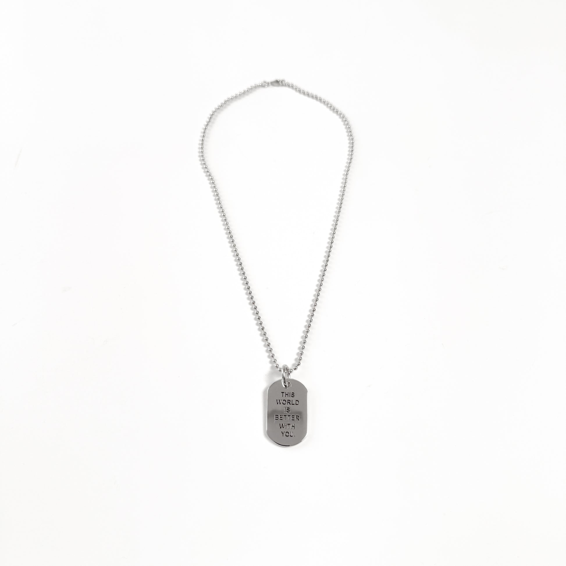 Engraved with our THIS WORLD IS BETTER WITH YOU Statement. 2 x 3 cm